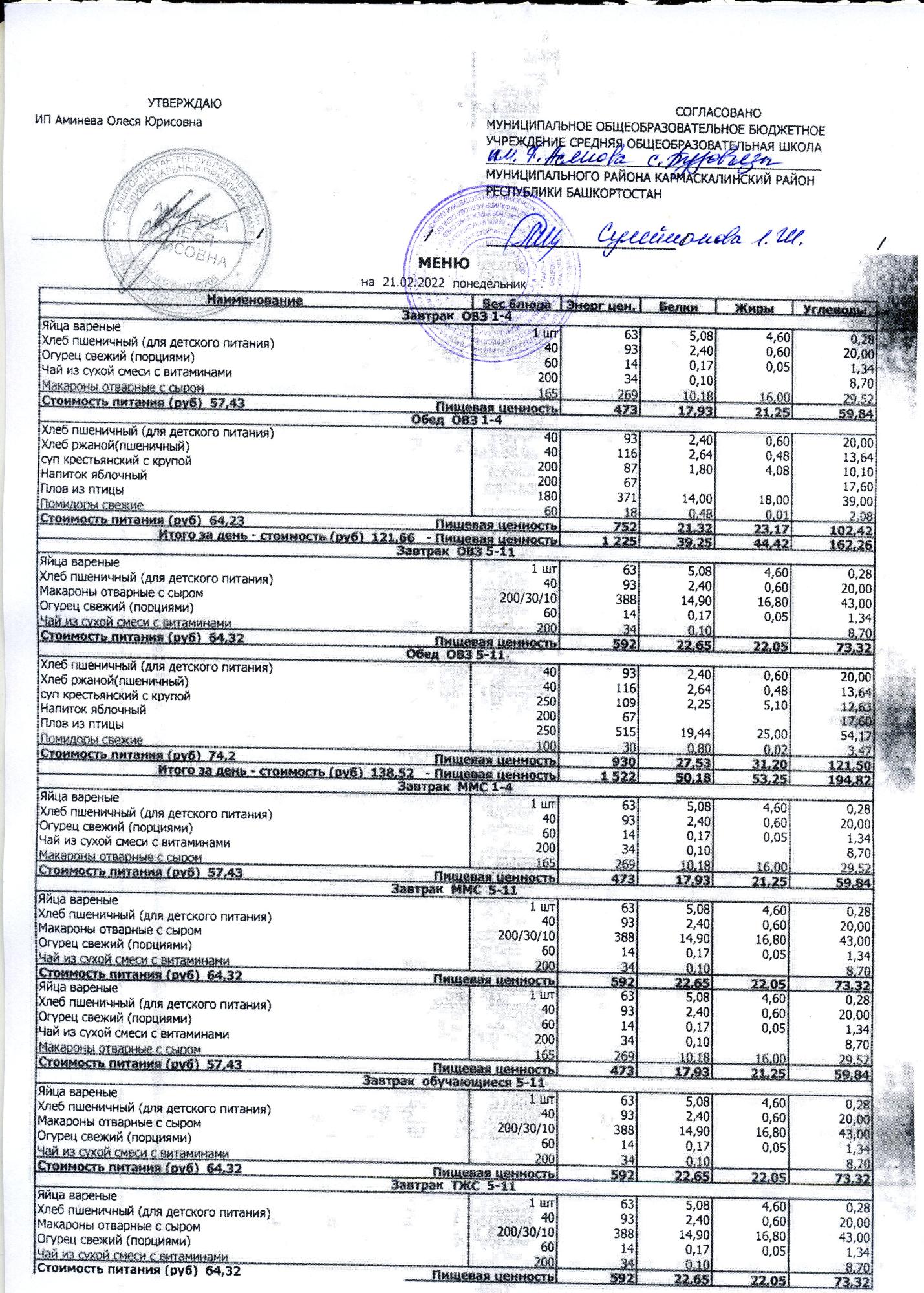 (Меню на 21.02.2022)