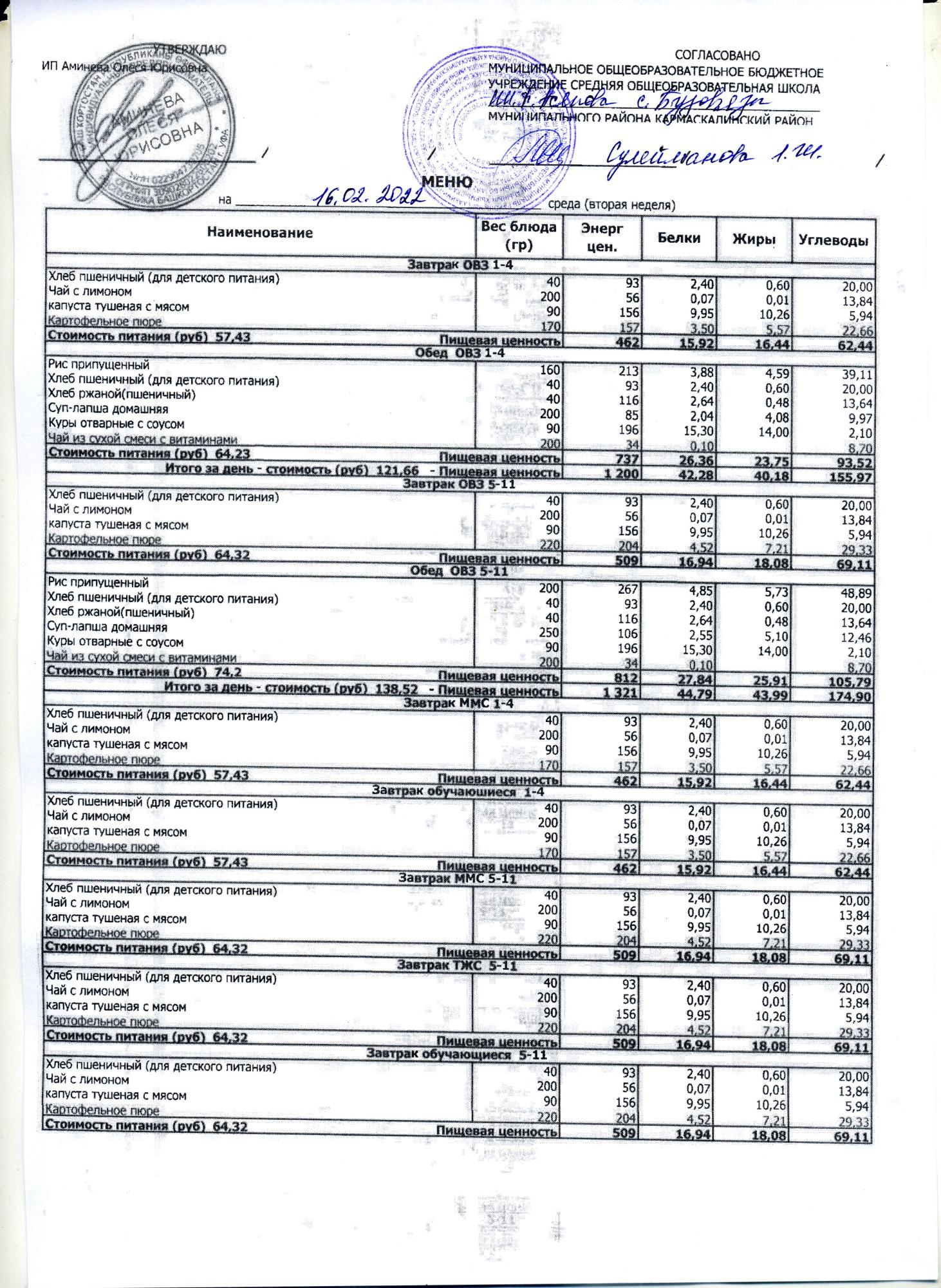 (меню на 16.02.2022)
