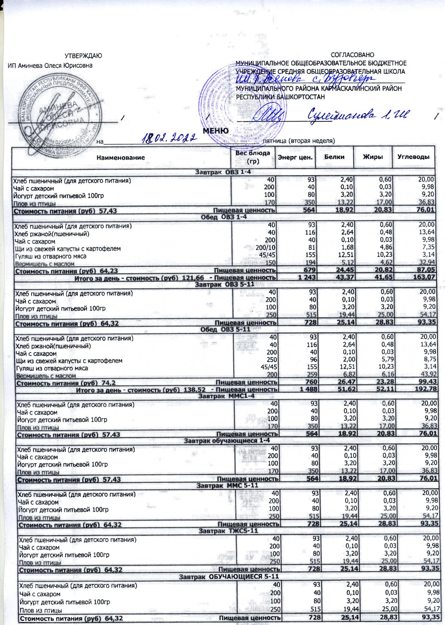 (меню на 18.02.2022)