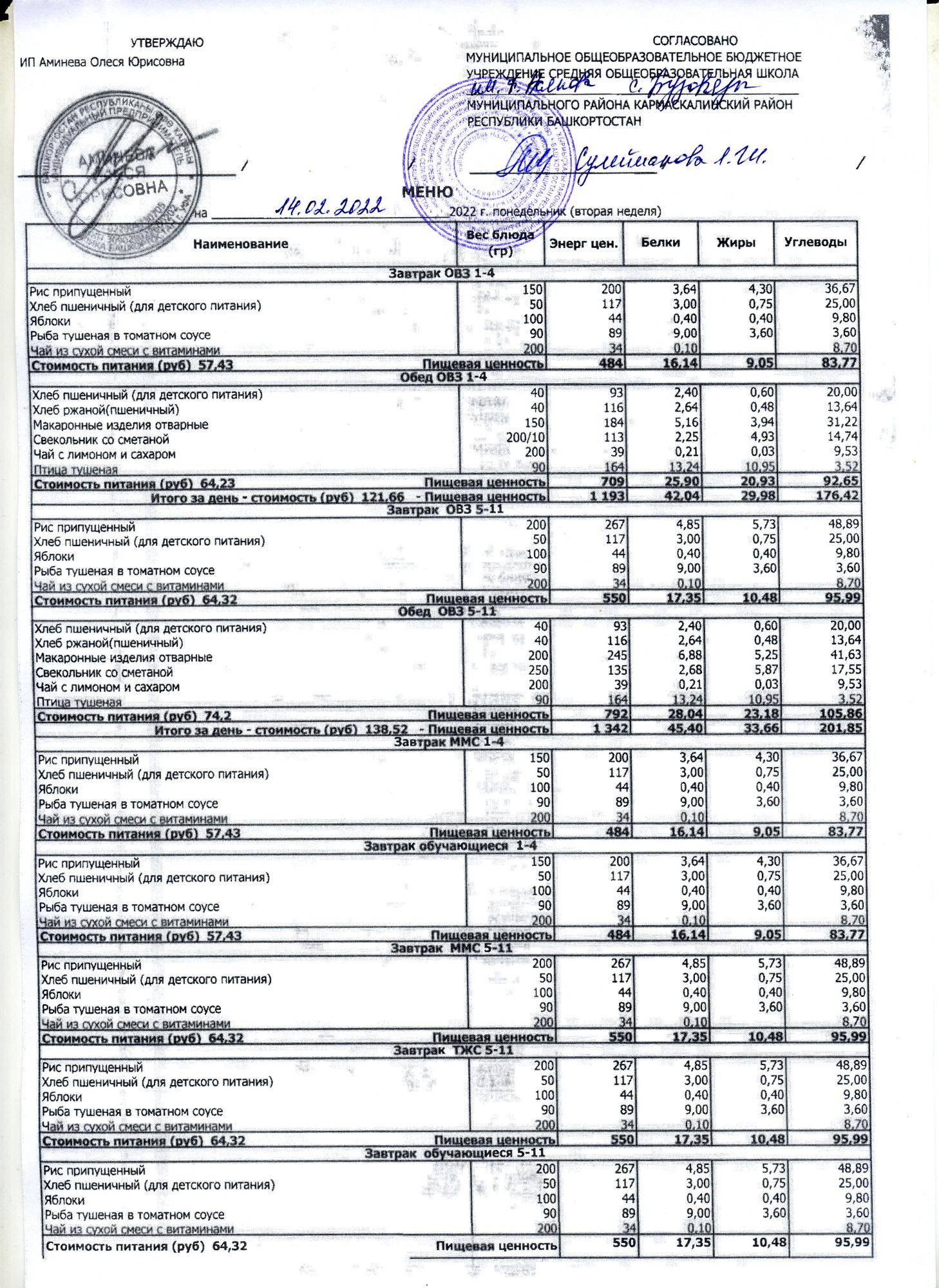 ( меню на 14.02.2022)