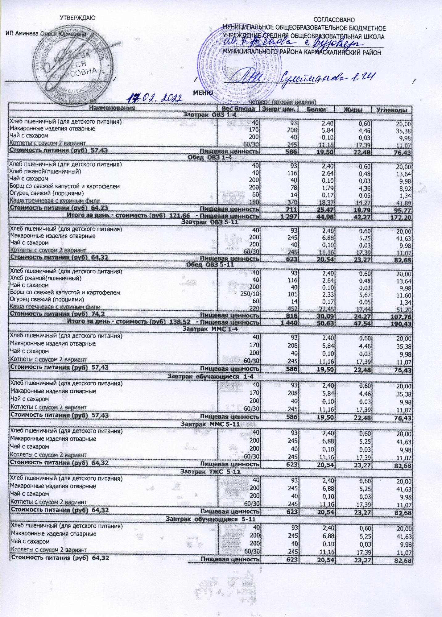 (меню на 17.02.2022)