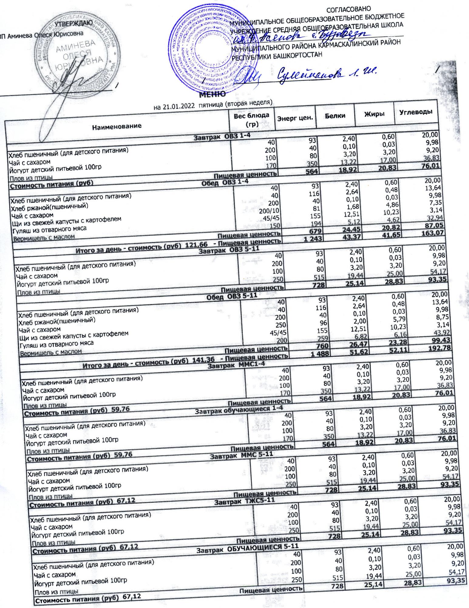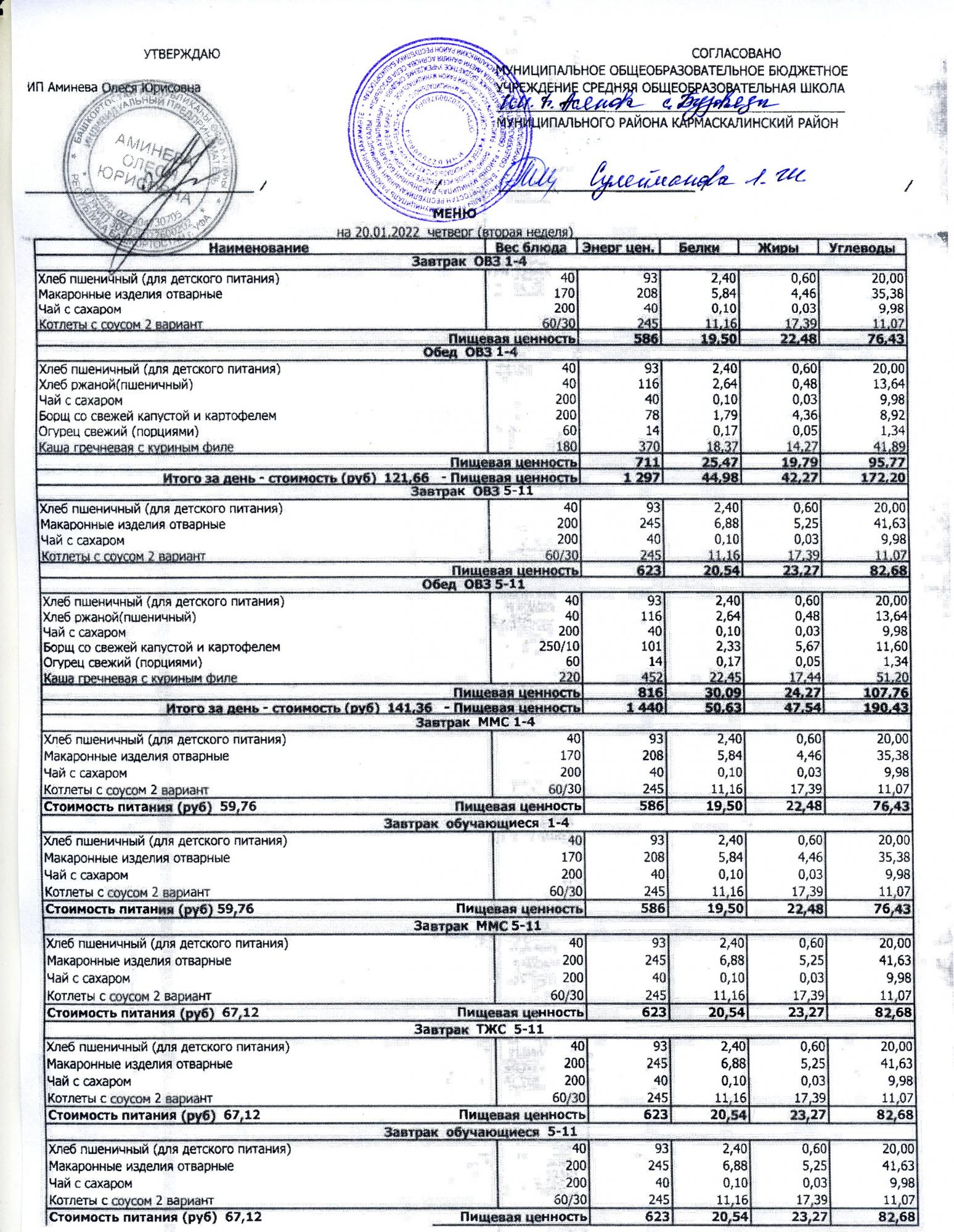 ( меню на 20.01.2022)