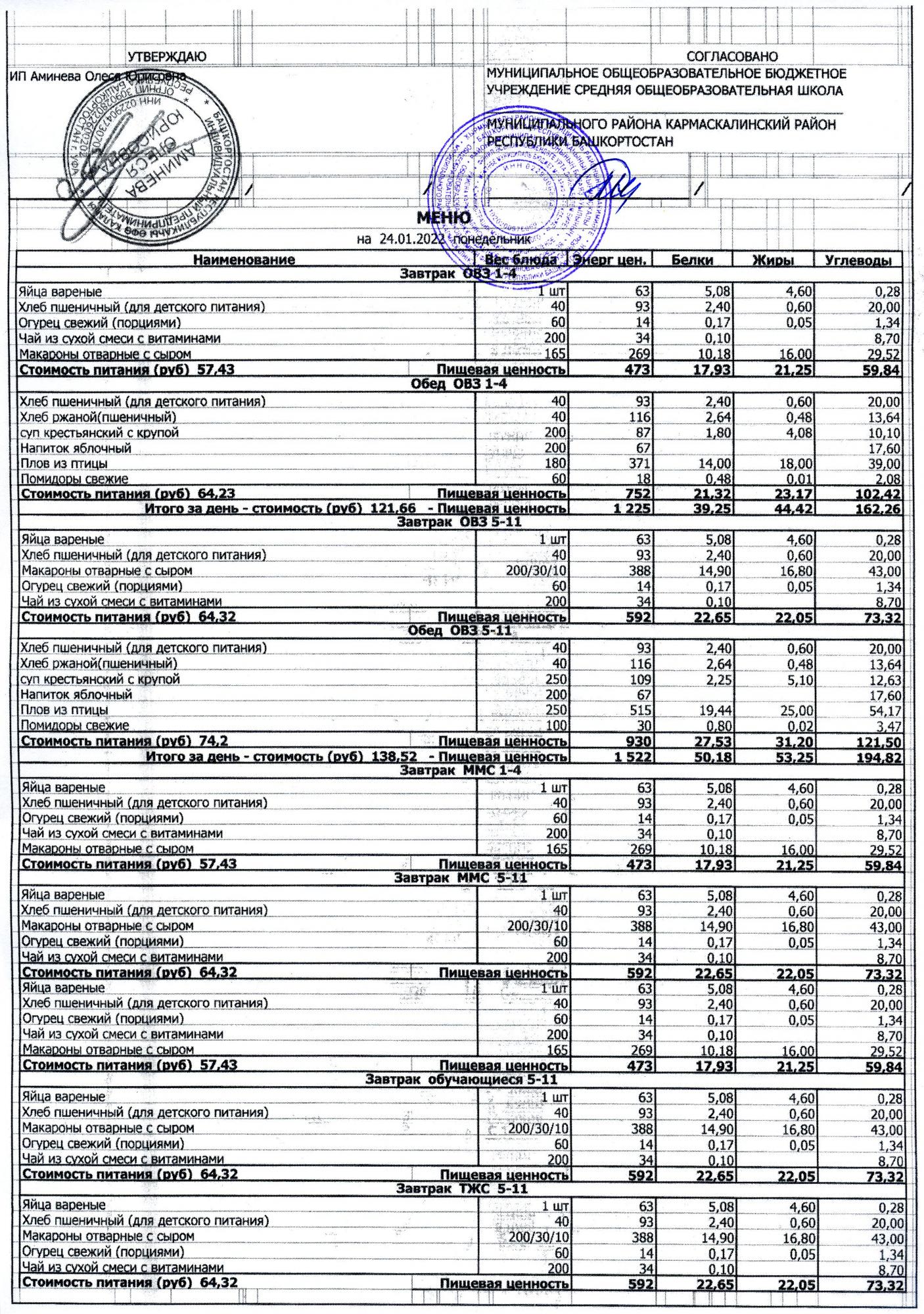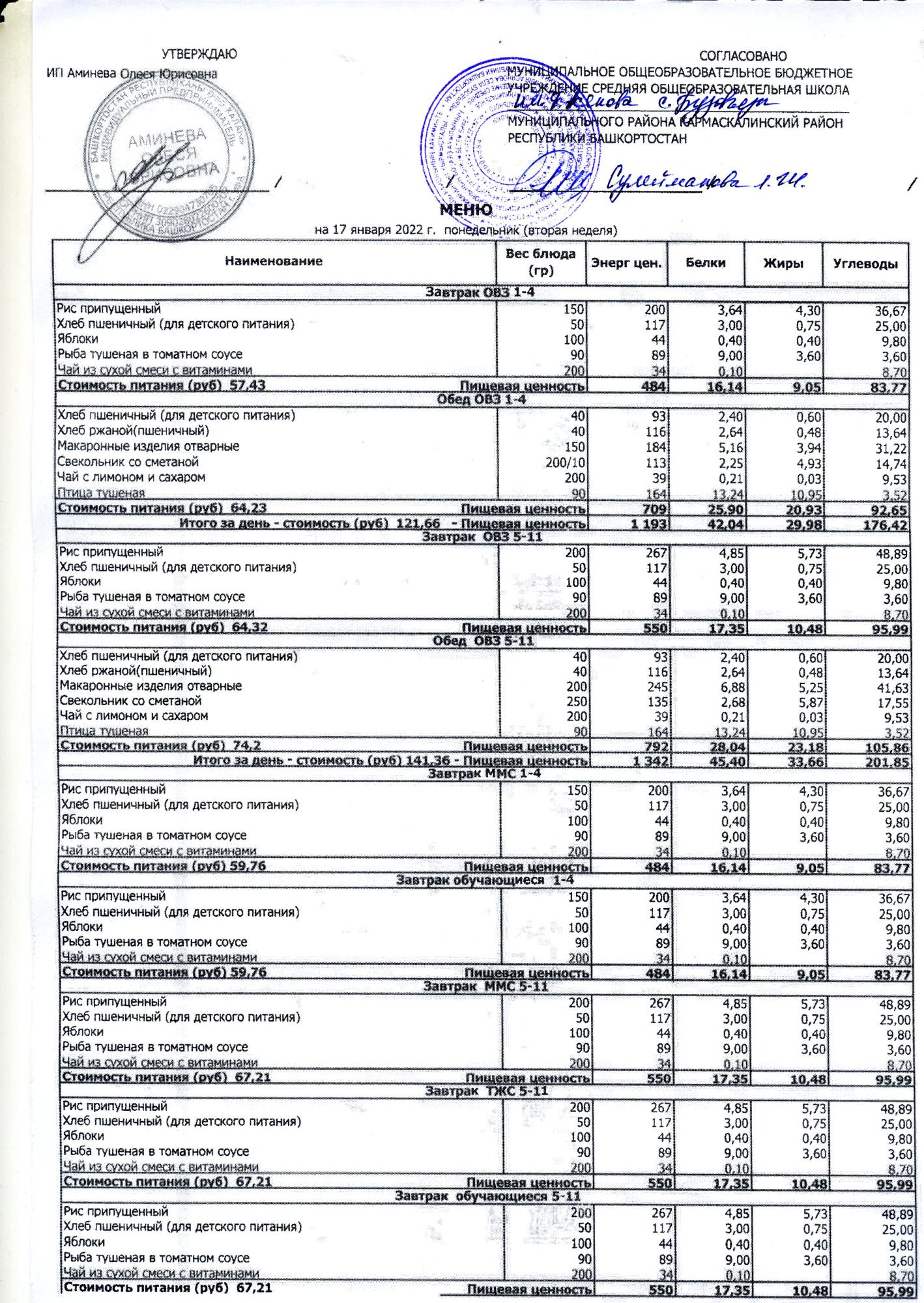 ( меню на 17.01.2022)