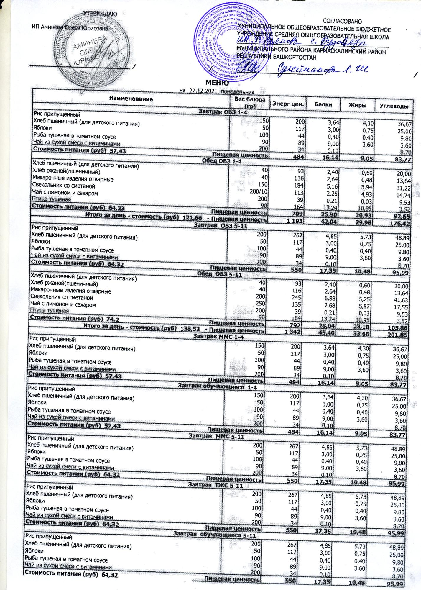 ( меню на 29.12.2021)