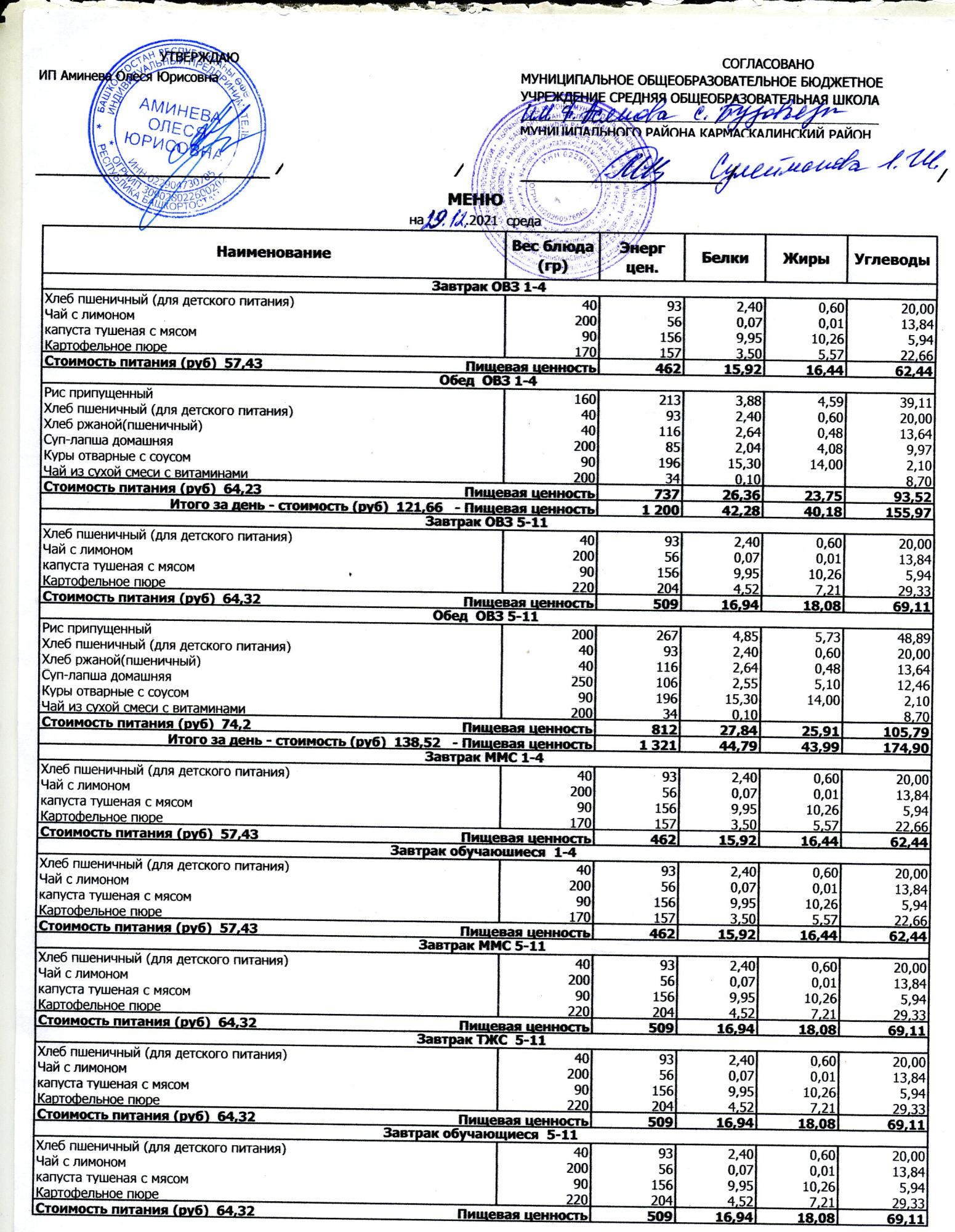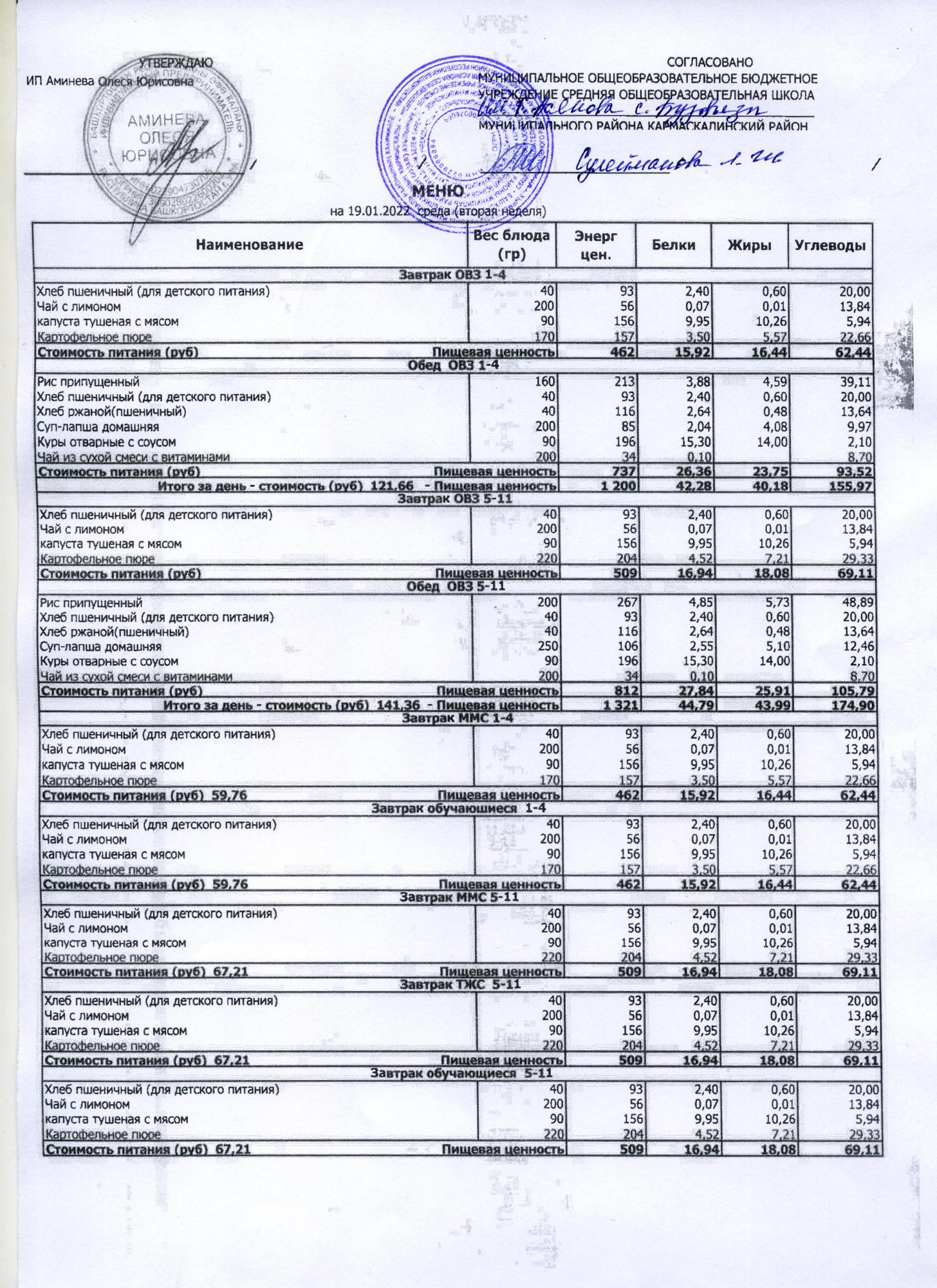 ( меню на 19.01.2022)